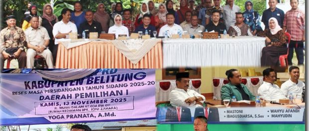 Tanjungpandan Kamis 13 November 2025. Hari Pertama Gelaran Reses Anggota DPRD dalam rangka menjaring aspirasi konstituen, dilaksanakan oleh anggota DPRD pada Daerah Pemihan 1 Tanjungpandan bertempat di Kantor Desa Lesung Batang yang di gelar oleh Joko Prianto, Wahyudi Wirayudha, S.A,B, Ferliza, Agung Maeterawira, Izar Abdulah, Sudiyanto, S.Pd.I dan Ivan Haidari, S.H sementara anggota DPRD dari Daerah Pemilihan I lainnya, Yoga Paranata, AMd. menggelar reses secara perorangan bertempat di rumah waga jalan Murai Desa Air Raya.
